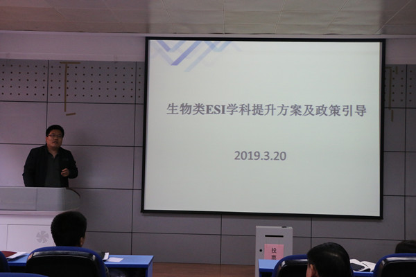 随后,尹大川副经理和牛卫宁副教授针对如何有效的提升生物类ESI学科排名,进行了细致的分析并汇报了工作方案,尹经理指出,ESI学科指标是学科评估中的关键核心数据,是高校“双一流”建设的落脚点,是学科资源分配的重要依据,全院教师需瞄准ESI学科重点突破方向,精准发力,为第五轮学科评估打好坚实基础。