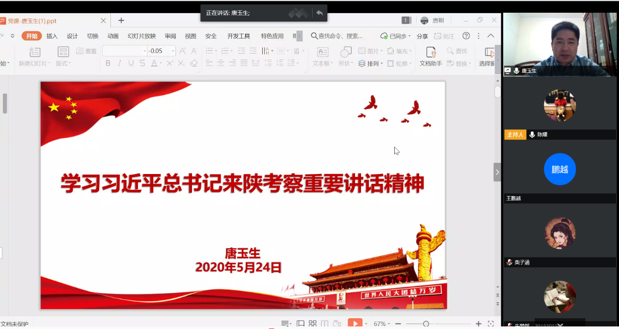 5月24日晚上8点,英国365集团开展2020年春季党课培训班线上党课。公司党委书记唐玉生为公司发展对象培训班和积极分子培训班员工讲授“学习习近平总书记来陕考察重要讲话精神”主题党课。