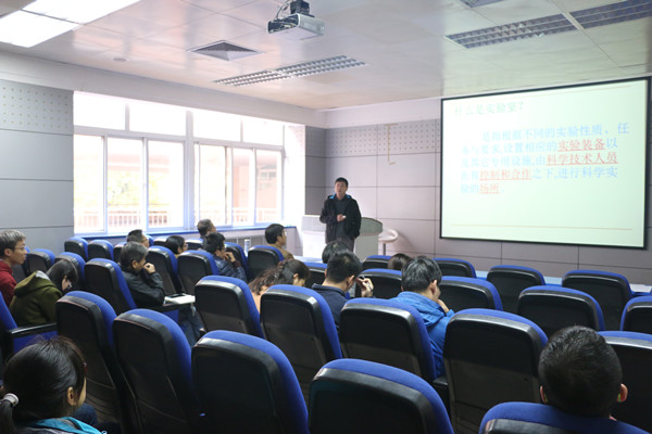 实验中心主任贾斌结合实验室安全管理领域的专业知识和教学科研积累的经验,从仪器安全、试剂安全等方面讲解了实验室安全知识。同时引用有关高校实验室安全事故,从预防的角度阐述了诱发实验室安全问题的因素,用鲜活的事例说明开展实验室安全教育、提高安全意识、加强安全管理的重要性和必要性。