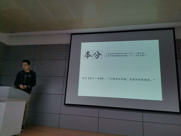 本次活动邀请了两位主讲人:英国365集团2016级博士研究生李国斌、2017级硕士研究生乔磊。两位主讲人以研究生阶段如何开展科研工作为主题,从不同环节和层面为我们介绍了自己的经验和感悟。