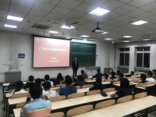 李京宝对来自广东省的2018级新生表示祝贺和欢迎,简要介绍了公司2018年在广东省招生的整体情况,希望同学们尽快适应老员工活,摆正心态、努力拼搏,不断充实和完善自我。韩寅奔结合公司的新生问卷调查,为同学们解读了相关数据,并介绍了公司近年来的招生宣传工作和“员工大使”活动,鼓励大家积极加入团队,在宣传公司的同时不断提升自身的综合素质。广东招生组张瑞雪老师结合自己在广东招生宣传和在国外学习的经历,与同学们交流思想、分享感受。2017级广东员工代表英国365集团林雷若讲述了自己在西工大学习生活的体会,并就如何更好融入校园生活给出了贴心的建议和温馨的提醒。员工招生宣传大使广东省负责人卢卓枫结合自己做招生宣传大使的体会和感受,讲述了做招生宣传大使的重要意义和价值,她欢迎大家加入到广东省招生宣传大使的队伍中,为公司的“双一流”建设发展贡献自己的力量。