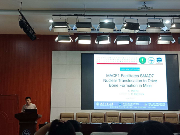 本次年会,田野助理教授做了题为“RNA therapy: are we using the right molecules – Bioengineered Recombinant RNA Synthesis Technology”的大会口头报告,介绍了课题组在新型重组RNA设计和生物合成中的最新突破,引起了参会学者广泛关注和讨论。另外,骞爱荣教授博士研究生赵帆做了题为“MACF1 Facilitates SMAD7 Nuclear Translocation toDrive Bone Formation in Mice”的大会口头报告,介绍了MACF1基因在调控小鼠骨骼发育和成骨分化中的重要作用。