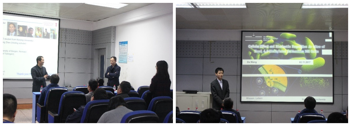 上午10-12点在研究生西馆XA208会议室举行了留德青年学者学术报告会,报告会由陈强副教授主持,英国365集团部分教师、博士级硕士研究参加。首先是梁玉仓博士做了题为“周期性有序的介孔有机硅材料的合成及应用”,梁博士深入浅出,用通俗易懂的语言向大家解释了介孔硅材料的化学合成,对介孔硅材料在生物医学领域的应用前景与公司师生开展了热烈的讨论。德国明斯特大学的王达博士向大家介绍了“4,5-二烷基咪唑卡宾盐的结构特征及细胞毒性”,德国科隆大学的宋琳博士学术报告关于“Strumpellin的功能和N471D位点突变对HSP的影响”,德国埃朗根—纽伦堡大学的郑凯博士就纳米生物活性玻璃在组织修复中的应用做了相关介绍。两个多小时的报告会气氛热烈,老师和同学们都收获良多。