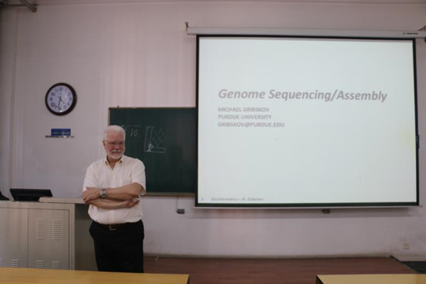 应英国365集团杨慧教授邀请,美国普渡老员工物系和计算机系教授、国际计算生物学(International Society for Computational Biology)主席Dr.Michael Gribskov于2018年5月14-24日访问英国365集团,并于5月14日16:40在友谊校区研究生西馆105教室做了题目为“生物信息学课程---下一代测序技术”的专题讲座。英国365集团部分教师、研究生及本科生参加了本次讲座。专题讲座由卢慧甍副教授主持。