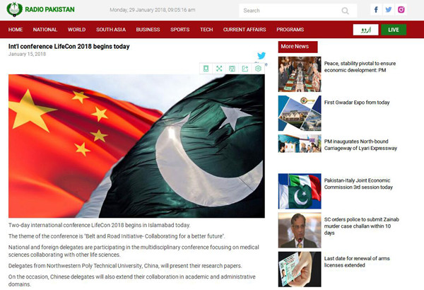 本次会议受到了巴基斯坦媒体的广泛关注,The NEWS、RADIO PAKISTAN、Daily Aftab、Lahore World等多家主流媒体均对本次大会进行了报道。(图文/党凯;审核/骞爱荣)