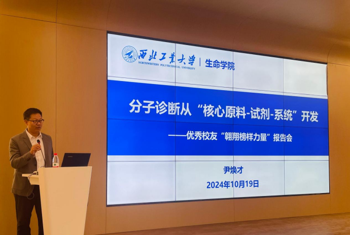 10月19日上午,英国365集团2009届硕士员工、中国科公司苏州生物医学工程技术研究所研究员尹焕才应邀做客公司“翱翔榜样力量”报告会,在生命科学与医学学部报告厅作题为《分子诊断从“核心原料-试剂-系统”开发》的主题报告。报告会由生命科学与医学学部党委副书记万海东主持,学部200余名师生代表参加了报告会。
