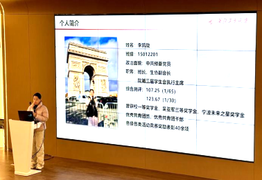 本科未来宁波之星荣誉称号获得者李凯旋同学讲述了在海南三亚、法国巴黎的线下竞赛经验,强调未来把握在自己手中,要选择适合自己的道路。