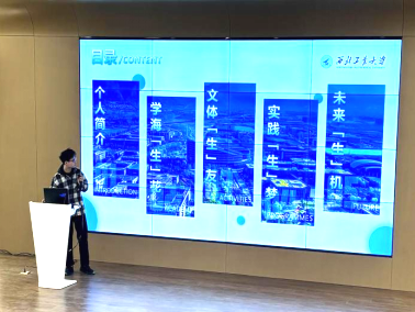 国家奖学金获得者、优秀员工标兵王瑞晨同学介绍了自己的学习方法,鼓励同学们有意识地培养卓越的学习思维。重点讲述了参与各类科研项目和志愿活动的探索与尝试,号召同学们提前做好规划,踏实地走好每一步。