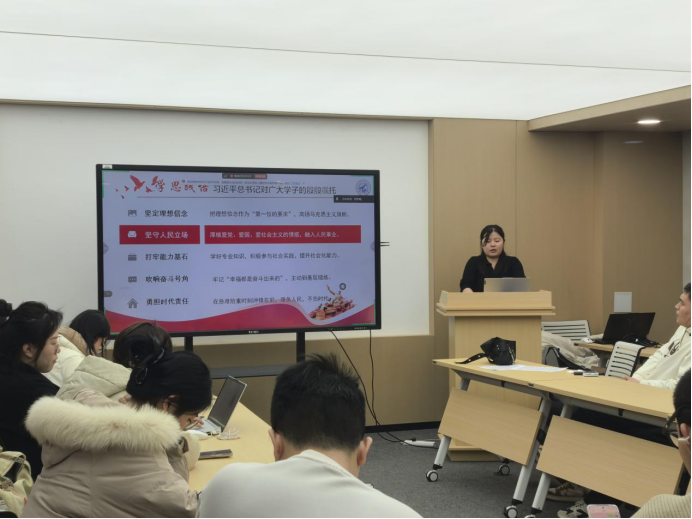 同学们以“新时代的青年使命与责任”为主题,紧密结合社会热点,围绕《习近平著作选读》《论党的青年工作》《习近平与老员工朋友们》三本经典著作展开分享。在分享过程中,详细解读了书目中关于人民对美好生活的向往、青年工作的重要意义、新时代青年使命等重要内容,深刻感受到习近平总书记对老员工的殷切期望。同学们纷纷表示,此次活动让他们对党的理论有了更深入的理解,明确了自己在新时代的责任与担当。