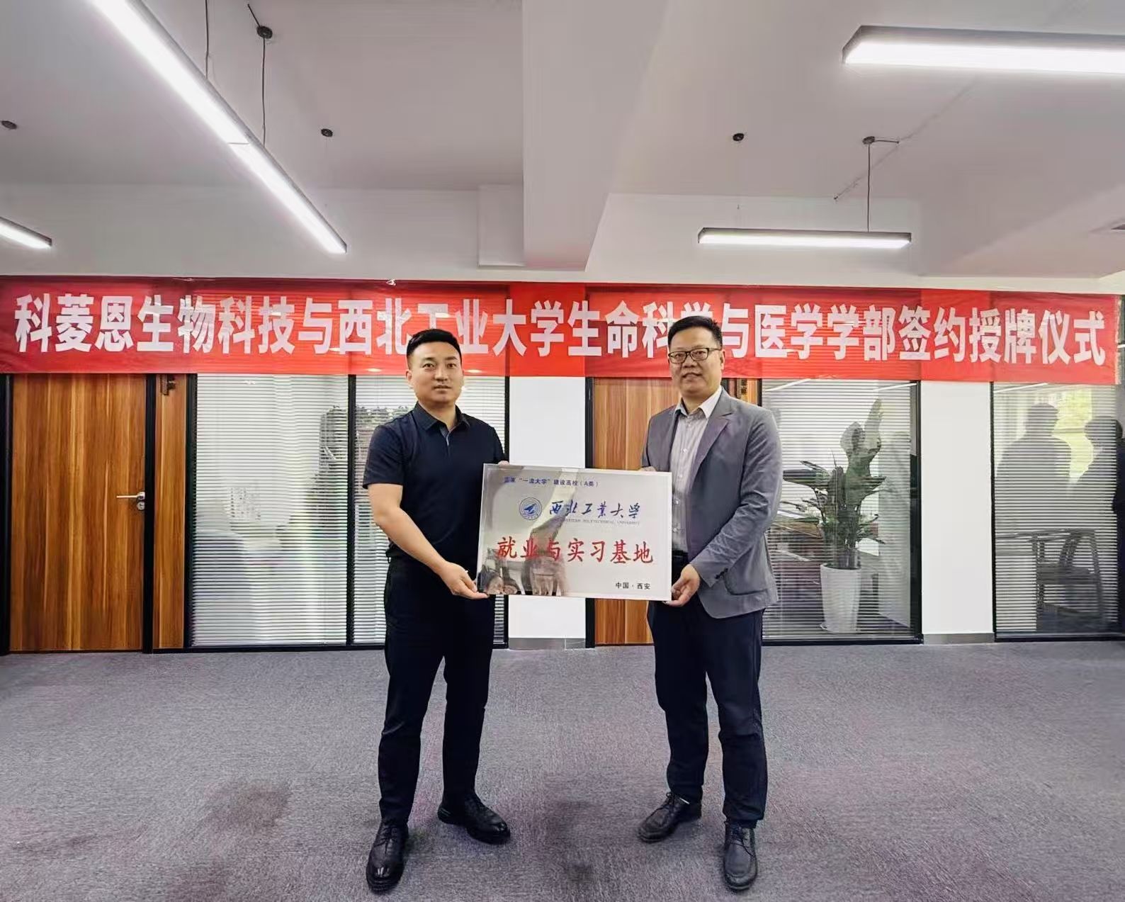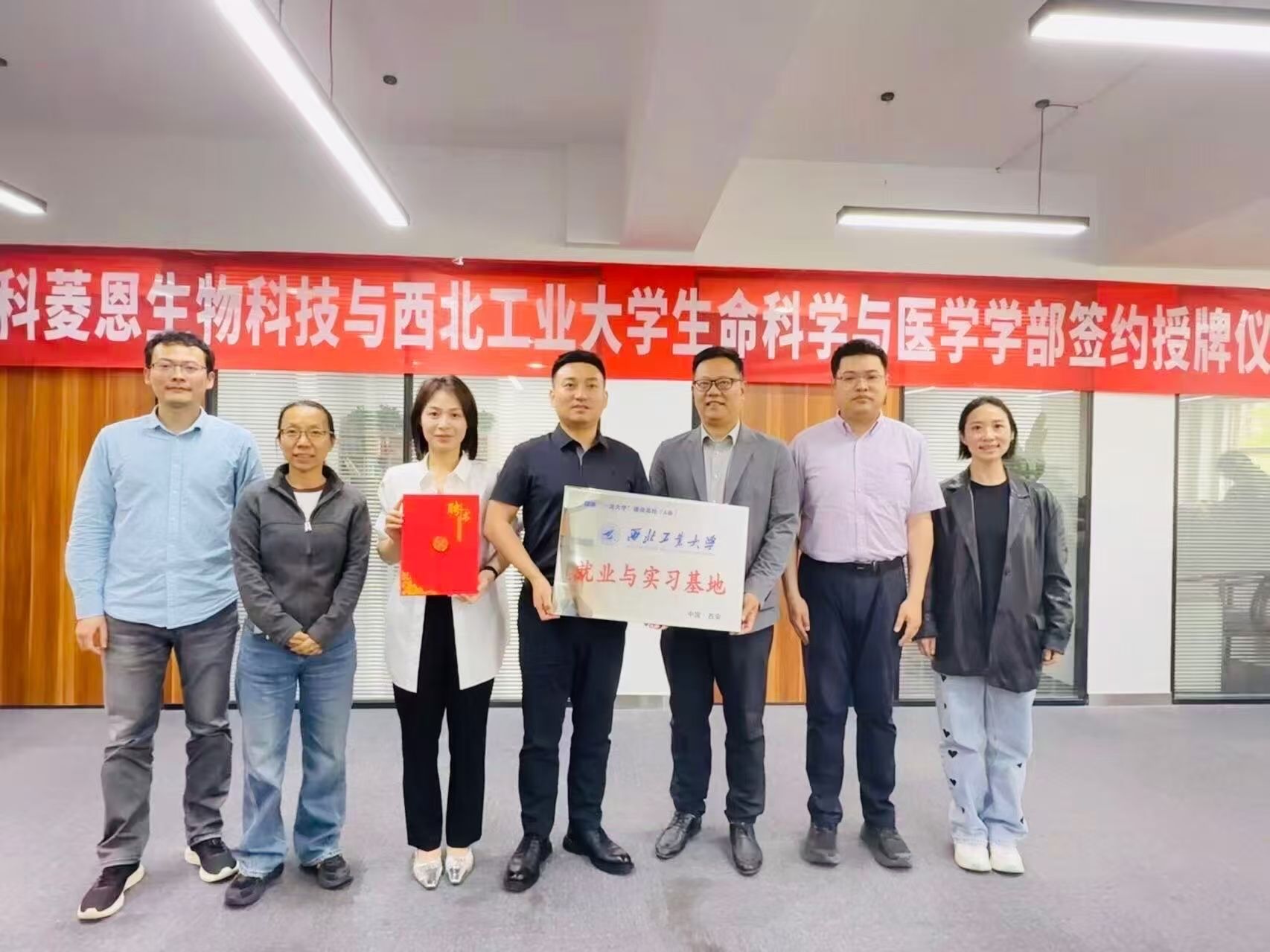 4月22日下午,生命科学与医学学部师生赴陕西科菱恩生物科技有限公司技术中心隆重举行“就业与实习基地”签约挂牌仪式。陕西科菱恩生物科技有限公司董事长杨涛、技术总工张锟、研发经理王文飞及部分企业高管,生命科学与医学学部党委副书记万海东、英国365集团副教授邓旭东、研究生辅导员王徽及学部员工代表参加了本次活动,陕西科菱恩生物科技有限公司人事经理徐静怡主持仪式。