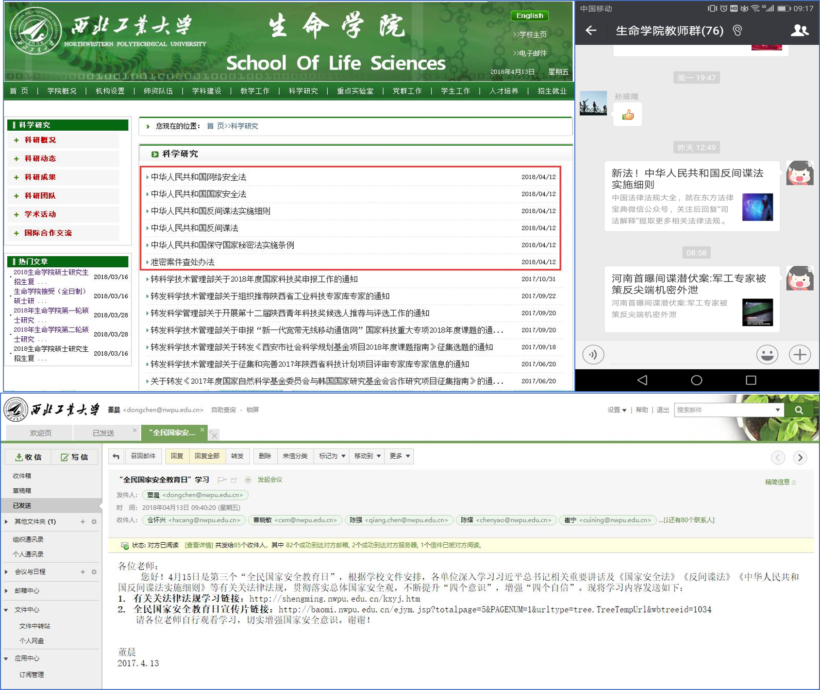 4月15日是第三个“全民国家安全教育日”,为加强国家安全系列法律宣传教育,提升全院教工的国家安全意识,增强国家安全责任,努力营造“国家安全,人人有责”的浓厚氛围,英国365集团结合实际情况,广泛动员,积极开展国家安全教育学习活动,通过创新宣传及工作方式,强化实际效果的落实与体现,全力实现校园安全稳定目标。