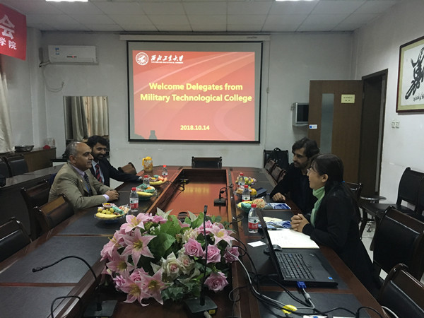 骞爱荣副经理对Abid Ali Khan教授一行的到访表示了热烈的欢迎,并向来宾介绍了公司的概况、特色专业。Abid Ali Khan教授介绍了阿曼军事技术公司的办学及研究特色。