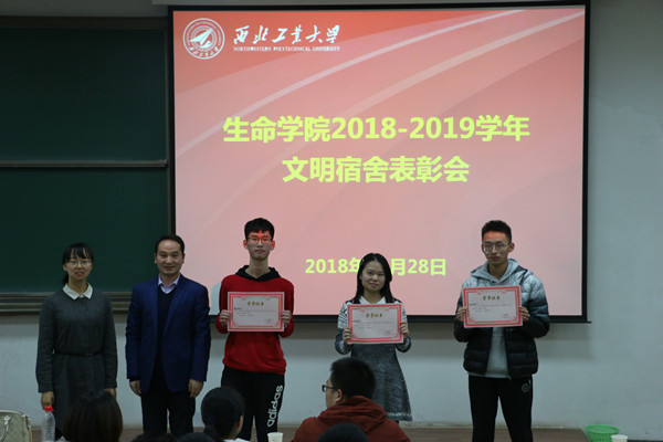 马西平对获奖的宿舍表示祝贺,鼓励大家一定要坚持良好的宿舍生活习惯,将安全卫生放在首要位置,务必注意用电安全,宿舍成员应当努力共建安全、文明、整洁、和谐宿舍,同时叮嘱大家在考试季来临之际要调整心态、合理安排作息,争取考出好成绩。秦兴华宣布了2018-2019学年文明宿舍获奖名单,马西平、秦兴华及各位班主任给文明宿舍颁发了奖状。本次共评比16个文明宿舍,其中一等奖3名,二等奖5名,三等奖8名。