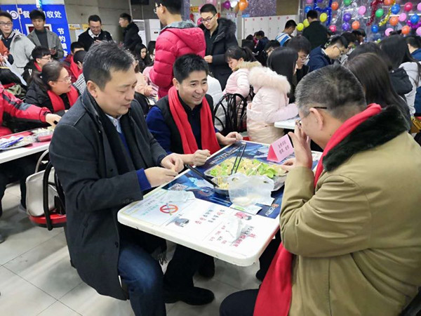 下午5点30分,参与包饺子活动的老师和同学在友谊、长安校区餐厅集结,大家围绕坐在餐桌旁,摩拳擦掌,跃跃欲试。生命公司党委书记唐玉生,副经理尹大川、骞爱荣,副书记马西平及辅导员、班主任等与员工欢聚一堂,共同迎接2019年的到来。备好的饺子馅和饺子皮上齐后,包饺子活动就正式开始了。随着老师和同学们的一起努力,一个个饺子在欢声笑语中出炉,有圆的,有长的,有尖的,有扁的,形状千奇百怪。大家你一言,我一语,欢声笑语不断,聊着一年来的学习和生活,分享自己对2019年的美好憧憬与期待。随后的“大胃王”吃饺子比赛更是激发了同学们的斗志,参赛人员个个争分夺秒,狼吞虎咽。观众席上人声鼎沸,为参赛人员加油呐喊,热腾腾的饺子宴在欢呼和呐喊声中到达高潮。此次包饺子活动给老师和同学提供了温馨共处,交流互动的空间,增进了师生之间与同学之间的情谊,体现了校领导们对员工生活的关注与关心,让大家感受到了西工大大家庭的温暖,同时增加了同学们的集体归属感。