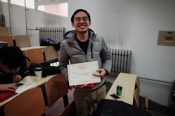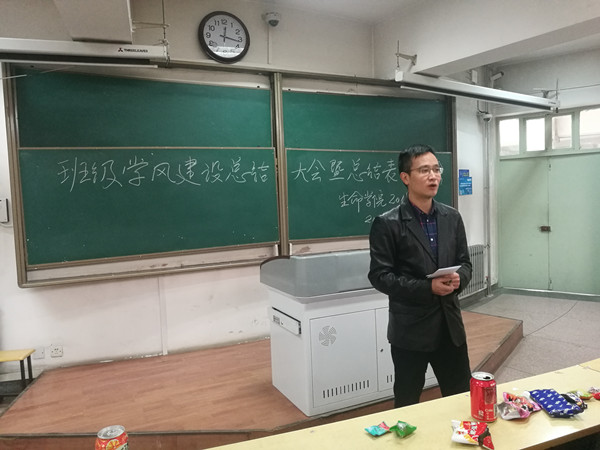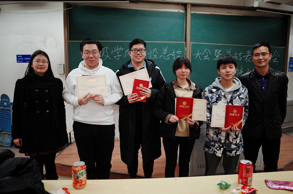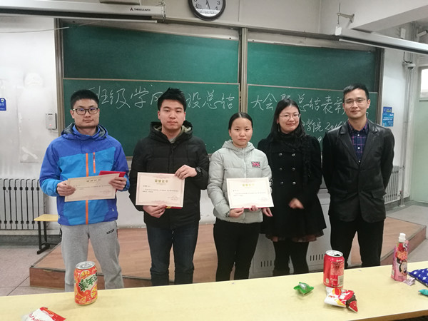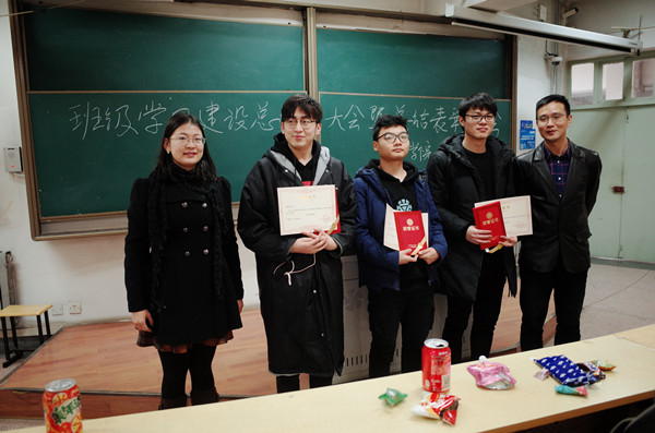 班主任呼延霆老师总结了本学期班级的总体情况。在学习方面,本学期通过课前签到、教师听课等制度大大改善了班级学风,同学们学习热情高涨,成绩有了明显的提升;在体育活动方面,本学期大家积极参与了公司小班篮球赛、三航杯羽毛球比赛和三航杯足球比赛等,并涌现出许多班级运动“明星”;最后对优秀班干部及在学习、科研、国际交流、体育方面表现突出的同学进行了表彰和颁奖。希望大家在新的一年继续努力,取得更好的成绩!