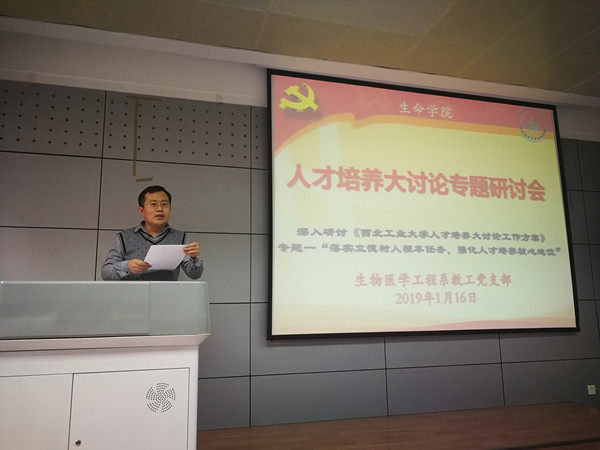 随后,武祥龙同志首先围绕全面贯彻党的教育方针,落实立德树人,凸显价值引领等方面,从本科人才培养、研究生人才培养、科研支撑人才培养、员工工作、人才培养国际化等方面,列出了当前存在的问题和下一步对策和建议。党员尹大川同志提出了科研如何反哺教学的问题、新一代员工基础功底薄弱、青年教师如何提高自身能力等问题做了详细的发言,并针对性地提出了未来发展的思路与建议。