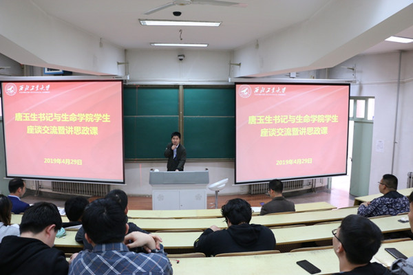 4月28日下午,生命公司党委书记唐玉生在友谊校区研究生西馆XB102为友谊校区全体员工讲思政课。党委副书记马西平,辅导员高永光,友谊校区本硕博员工约300人参加了学习。