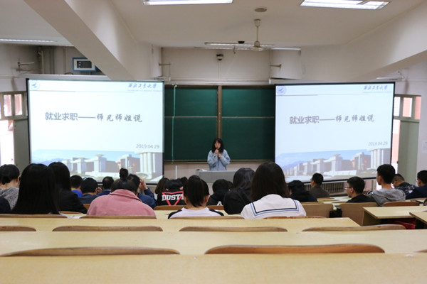 2019届硕士毕业生杜勇勇同学从就业简历如何准备、面试时如何回答面试官的问题以及投递简历的技巧三个方面介绍了自己找工作的经验。他希望学弟学妹们在平时的学习和生活中不断提升充实自己,学好英语,用好三个必备软件(AI、PS和Acrobat),用好两个重要网站(沃克导航网和高校人才网),也要及时关注公司和其他高校的微信就业公众号和就业签约平台网,提前制作好中英文个人简历,对将要应聘的企业或单位做好足够的准备工作。