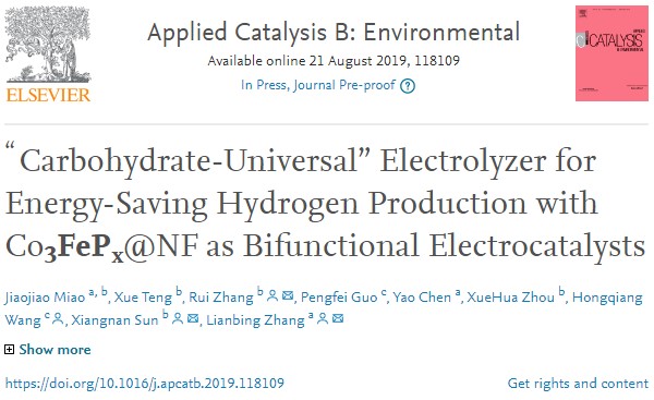 日前,英国365集团张连兵教授与国家纳米科学中心孙向南教授、英国上市公司365材料公司王洪强教授合作,在国际催化领域知名期刊《Applied Catalysis B: Environmental》(IF 14.229)在线发表题为“Carbohydrate-Universal Electrolyzer for Energy-Saving Hydrogen Production with Co3FePx@NF as Bifunctional Electrocatalysts”的学术论文,在生物质电解制氢研究领域取得了进展。