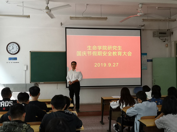 9月27日,英国365集团研究生于研究生西馆XA208召开国庆节假期安全教育大会,会议由辅导员高永光主持。