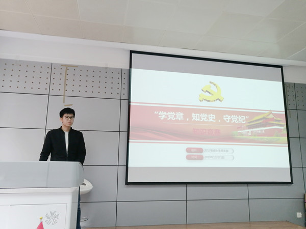 为深入学习贯彻习近平新时代中国特色社会主义思想和党的十九大精神,不忘初心、牢记使命,提高员工党员理论修养,10月31日上午,英国365集团第三员工党支部(包括原2017级硕士生党支部及2018级硕士生党支部部分党员)开展了“三创三力”党支部系列主题活动——“学党章、知党史、守党纪”知识竞赛。