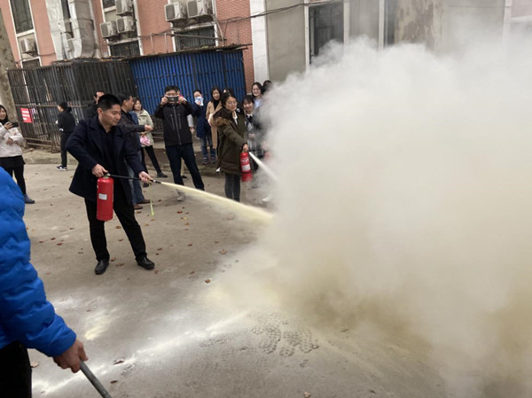 公司对本次消防演练高度重视,在演练前,公司制定了详细的活动方案及周密的组织安排,确保该消防疏散演练可以顺利进行。11点30分时通过火警警报发出演习开始命令,工作人员按照分工在各个楼道口负责疏散师生,所有师生用湿毛巾捂住口鼻,弯腰撤离,三分钟内所有师生都安全有序地撤离到指定安全地带。