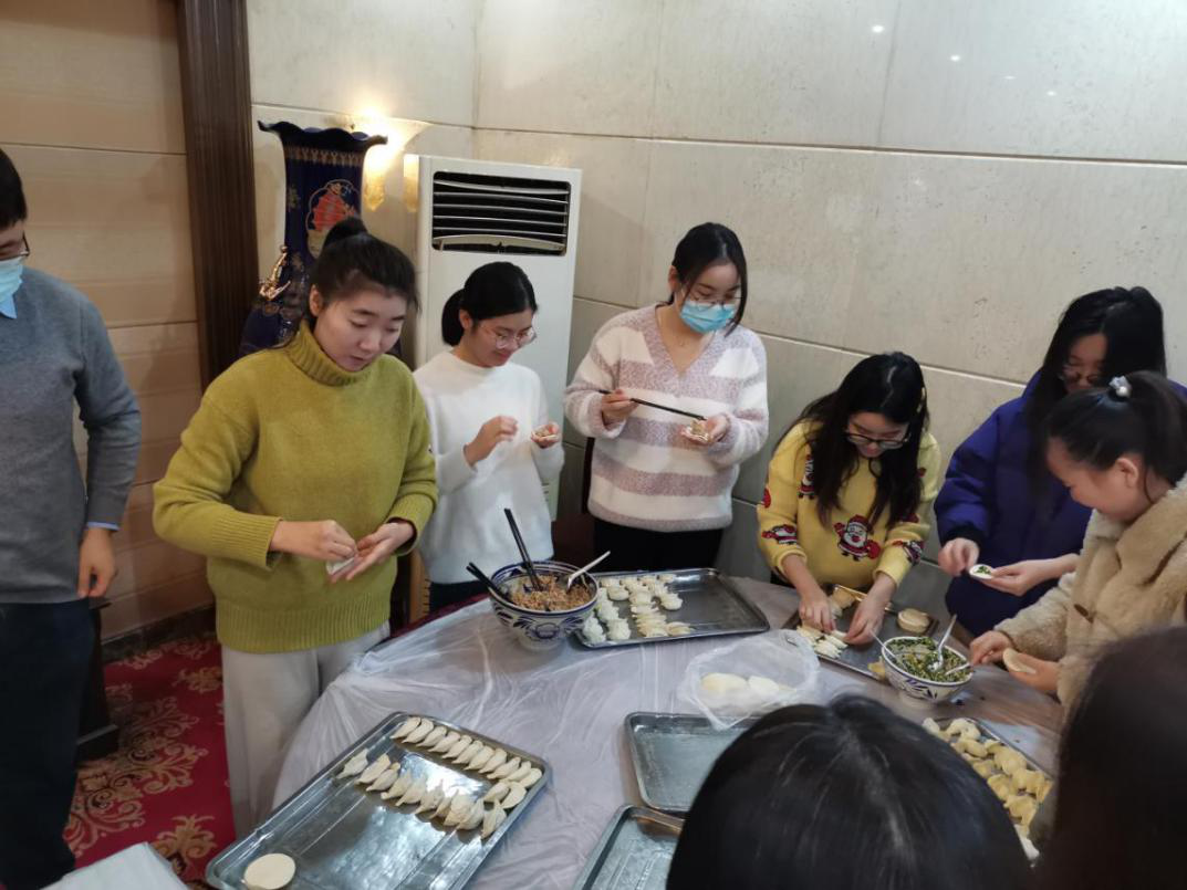 办公室工作人员协调好所需的面、馅、调料、餐具和工具,在餐厅工作人员的帮助下,各种物料和食材已提前备好在桌,公司老师们也陆续抵达现场。包饺子的过程是最为精彩,各地有各地的包法,包出来的饺子也是各式各样,有的老师同学包出的饺子精美别致;有的则不满足于传统饺子的形状,玩起各种花样。伴随着欢声与笑语,一盘盘热气腾腾的饺子在大家的期待中被端上了餐桌,老师们、同学们津津有味的享受着自己的劳动成果。
