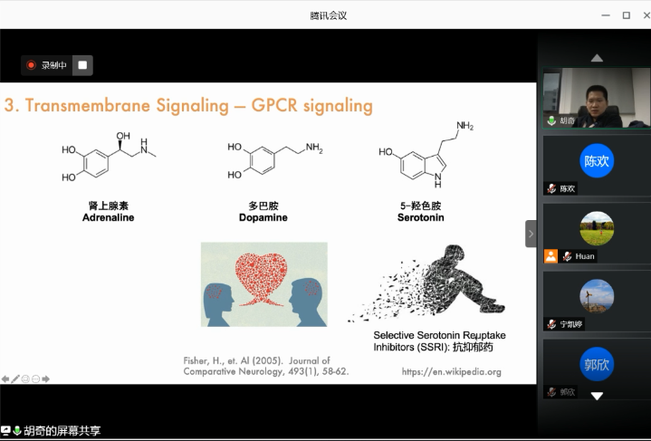 12月29日下午,“寻梦·启航”生命科学大讲堂系列讲座第六期成功举办。西湖老员工命科学公司胡奇研究员在线为全院师生作题为《细胞膜与跨膜信号转导》专题讲座。副经理牛卫宁、公司本科生、感兴趣的研究生及教师在线聆听了讲座。讲座由牛卫宁主持。