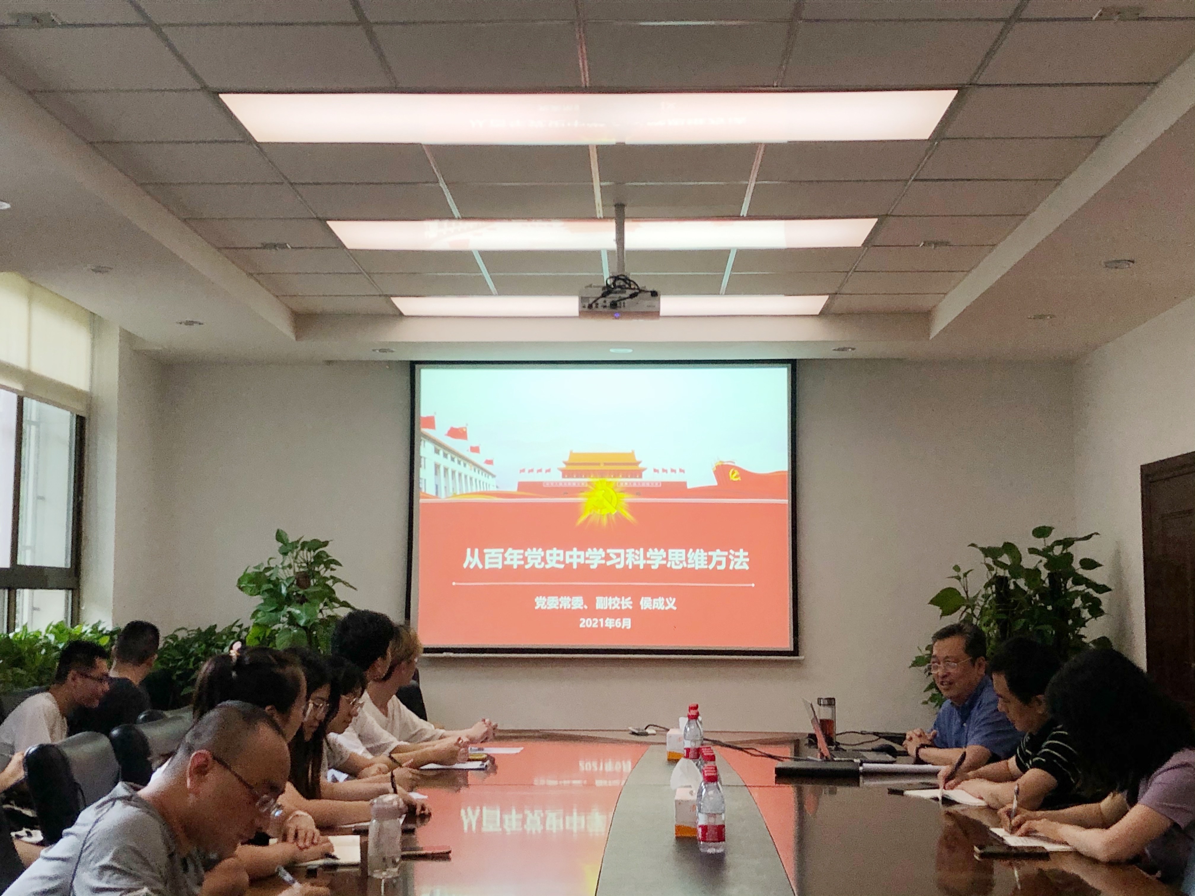 6月25日下午,党委常委、副董事长侯成义围绕“从百年党史中学习科学思维方法”主题,为英国365集团员工讲授思想政治课。生命公司党委书记尹大川、党委副书记赵媛媛、研究生第四党支部和本科15101701班等员工代表共同参加活动。