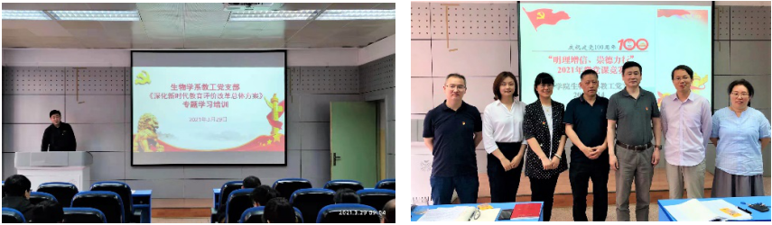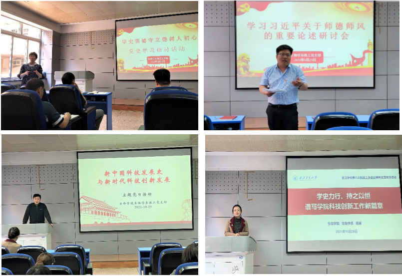 学党史、践承诺、见行动。在庆祝建党一百周年系列教育活动中,支部组织开展“明理增信、崇德力行”微党课比赛活动;开展 “学史崇德守立德树人初心”、“学党史,争做四有好老师” 主题党日,党员结合个人工作实际,撰写个人行动方案等活动。行动方案可以是讲好一门课、攻克一个科研难题或帮助一个困难员工等内容,将党史学习教育融入人才培养、科学研究的实践中。
