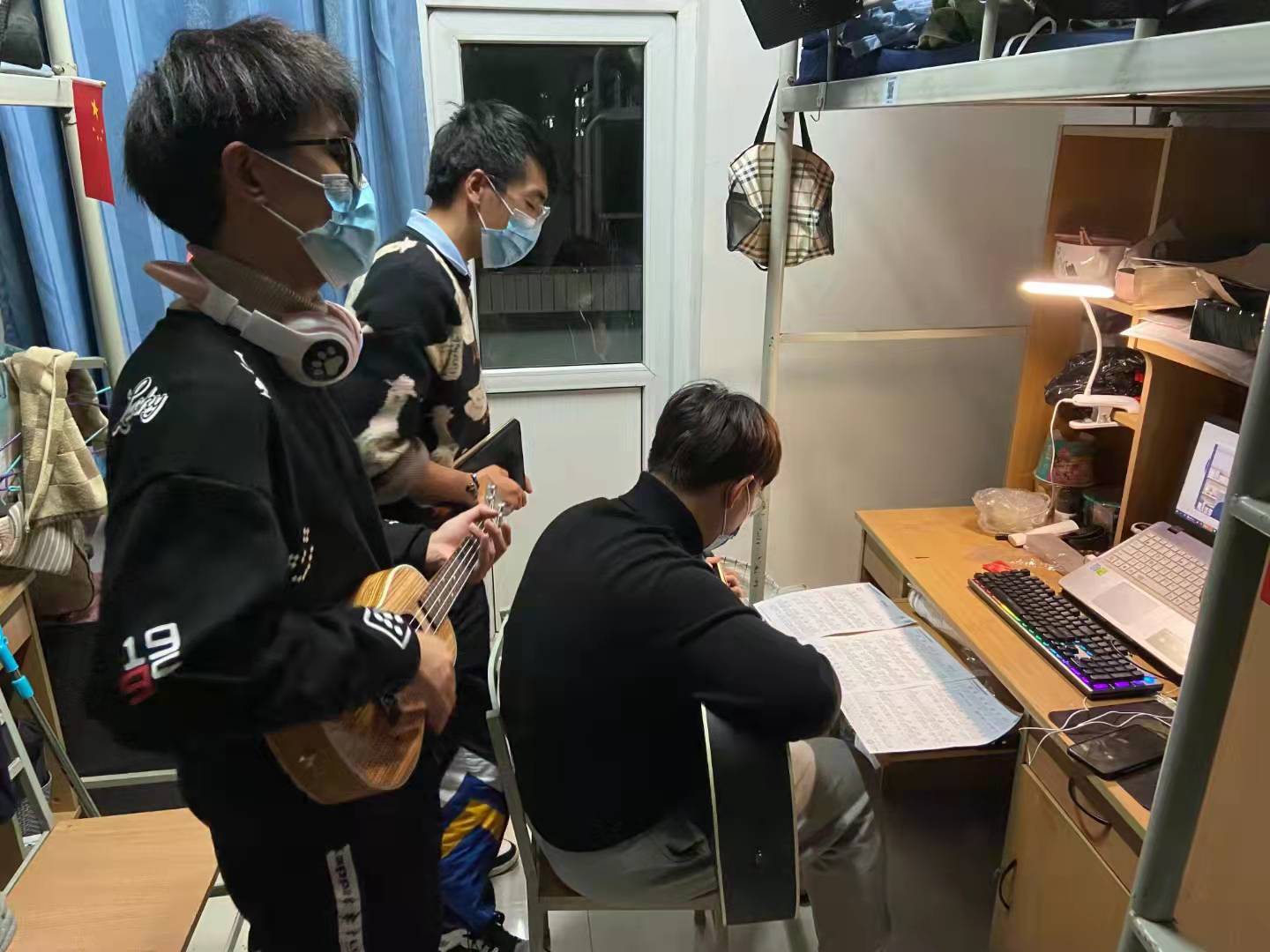 同学们在线表演歌曲、舞蹈等文艺节目,热闹非凡,宿舍里洋溢着浓厚的节日气氛。