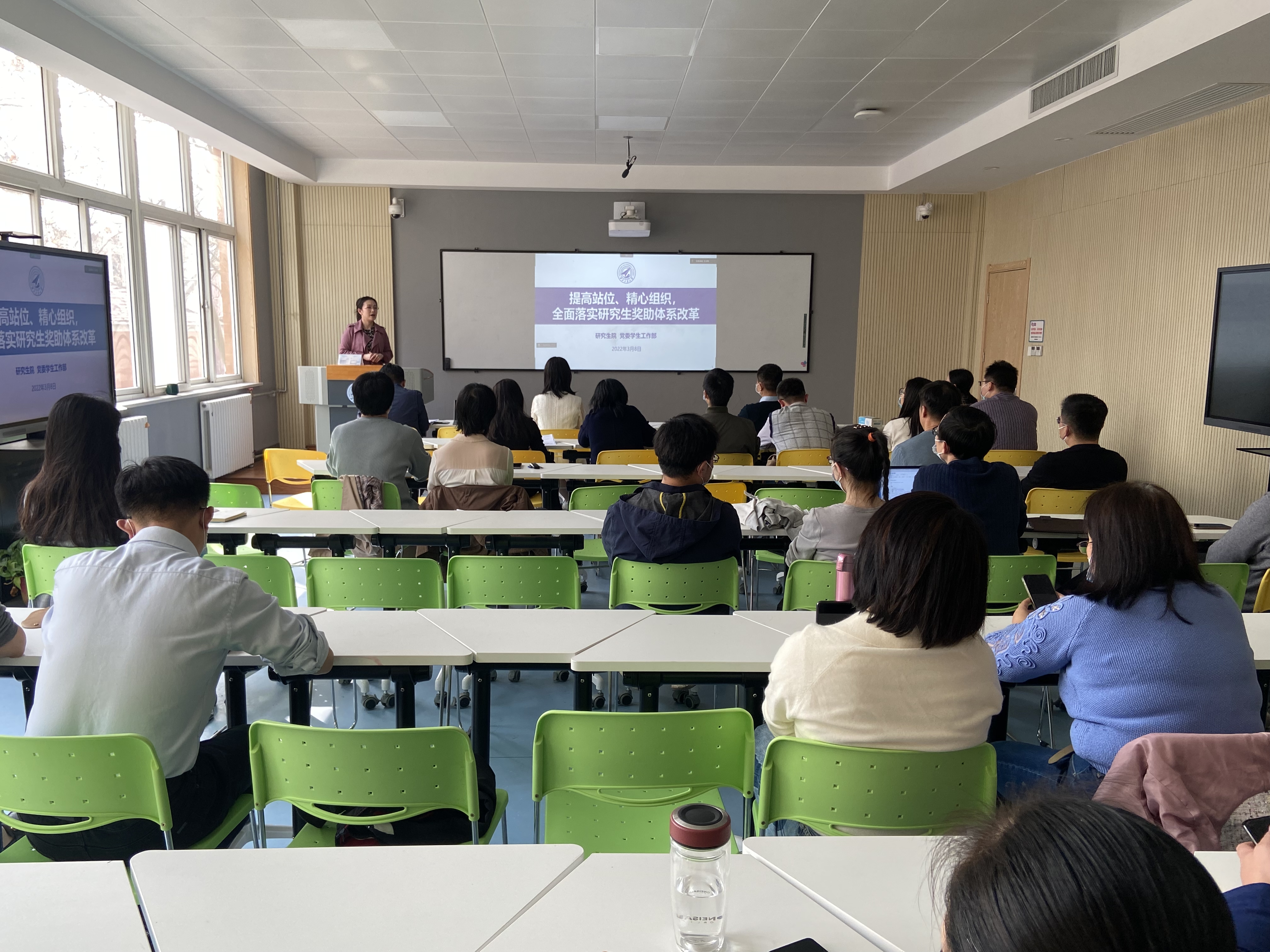 副经理杨慧在会议上宣贯了研究生最新奖助体系改革政策,传达了提高站位、精心组织,全面落实研究生奖助体系改革精神,介绍了研究生奖助体系改革的关键举措,强调了研究生奖助体系改革对人才培养的关键作用,希望各位老师提高认识、认真落实。