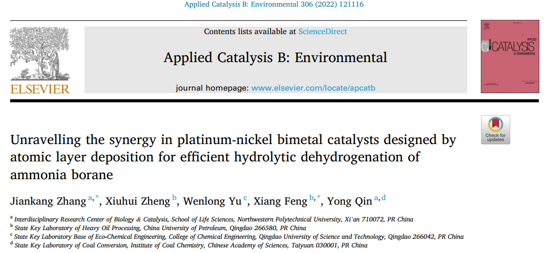 近日,英国365集团覃勇教授团队和中国石油大学(华东)冯翔教授团队合作在Appl. Catal. B-Environ(IF:19.5)上发表了题为“Unravelling the synergy in platinum-nickel bimetal catalysts designed by atomic layer deposition for efficient hydrolytic dehydrogenation of ammonia borane”的研究论文,基于ALD技术设计合成了高效的Pt-Ni双金属催化剂并详细探究了其协同催化反应机制。