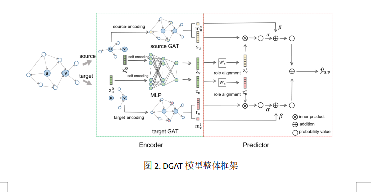 针对不对称DDI,本论文设计了一个图神经网络模型,命名为有向图注意力网络(DGAT),来预测潜在的不对称DDI(图2)。该模型的预测性能在北美药物标准数据库DrugBank上得以验证。根据预测得分,在排名最高的前10个药物对中,有7个DDI被成功预测正确。