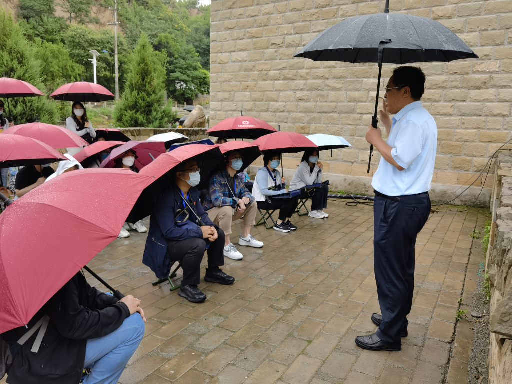 延安干部培训公司特聘教授王东维在雨中为大家开展了一堂生动的《习近平在梁家河的知青岁月与时代情怀》主题教学,详细讲述了习近平总书记七年知青岁月,激励师生向习近平总书记学习,实事求是、踏实进步。