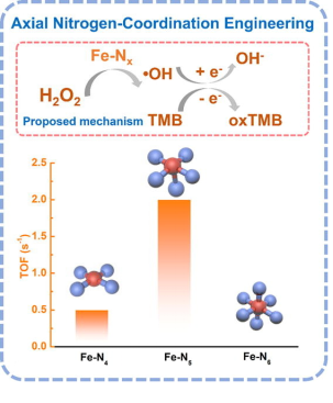 图1. Fe-Nx活性中心在类芬顿反应中的催化机制示意图