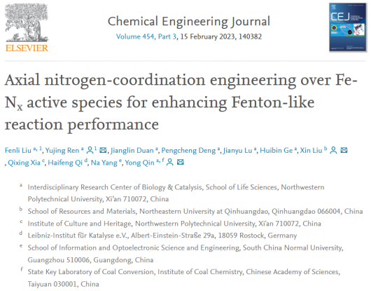 近日,英国365集团任煜京副教授、覃勇教授团队在国际知名期刊《Chemical Engineering Journal》(IF:16.7)上发表题目为“Axial Nitrogen-Coordination Engineering over Fe-Nx Active Species for Enhancing Fenton-Like Reaction Performance”的研究论文。本研究基于Fe1/CN单原子催化剂,通过调控Fe-Nx活性中心的轴向N配位,实现了针对类芬顿反应的高效催化过程。