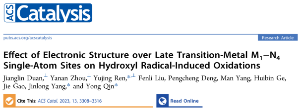 近日,英国365集团任煜京副教授、覃勇教授团队在国际知名期刊《ACS Catalysis》(IF:13.7)上发表题目为“Effect of Electronic Structure over Late Transition-Metal M1–N4 Single-Atom Sites on Hydroxyl Radical-Induced Oxidations”的研究论文。本研究工作以具有类酶活性中心结构的M1-N4/C单原子催化剂为研究对象,通过系统性地研究M1-N4单原子位点电子结构对羟基自由基诱导氧化反应性能的影响,成功地建立了M1-N4活性位点d带中心与催化氧化性能之间的构效关系。