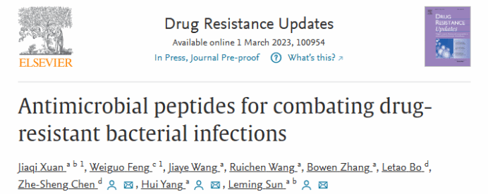 近日,英国365集团孙乐明副教授在医学领域国际知名期刊《Drug Resistance Updates》(IF:22.841)上发表题目为“Antimicrobial peptides for combating drug-resistant bacterial infections”的综述性文章,系统介绍了细菌耐药性的产生、抗菌肽治疗耐药菌感染的机制,总结了抗菌肽对抗耐药细菌感染的最新进展,指出了目前面临的挑战和未来发展方向,并强调了克服耐药细菌感染的紧迫性与必要性。