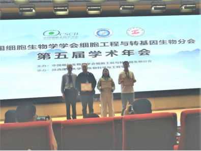 骨代谢研究室骞爱荣教授、李郁副教授、张文娟副教授、裴佳伟博士生等11人参加了此次会议。骞爱荣教授和李郁副教授当选为中国细胞生物学学会细胞工程与转基因生物分会第五届委员会委员。裴佳伟博士生做了题为“抗人α-亚科疱疹病毒重组siRNAs生物合成及抗病毒研究”的青年学术研究报告,介绍了生物合成重组siRNA在抗病毒方面的研究,生物合成小核酸具有安全性好,得率高,可大规模生产带有天然修饰等诸多优点,在未来小核酸药物的研发和生产上将发挥重要作用,报告引起了与会人员的高度关注。研究室成员陈志浩博士和张琰博士获得了本次年会青年优秀论文奖,大会最后为获奖者进行了颁奖仪式。