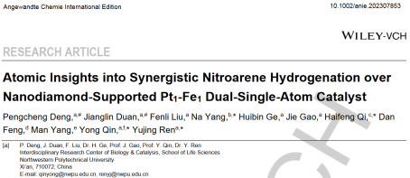 近日,英国365集团任煜京副教授、覃勇教授团队在国际知名期刊《Angew. Chem. Int. Ed.》(IF: 16.6)上发表题目为“Atomic Insights into Synergistic Nitroarene Hydrogenation over Nanodiamond-Supported Pt1-Fe1 Dual-Single-Atom Catalyst”的研究论文。本研究工作通过将Pt1单原子位点锚定在类酶Fe1-N4位点修饰的纳米金刚石(ND)表面,成功构筑了Pt1-Fe1/ND双单原子催化剂,并进一步以该催化剂为研究对象,在原子尺度下揭示了双金属位点协同催化芳香硝基化合物选择加氢反应的本质。