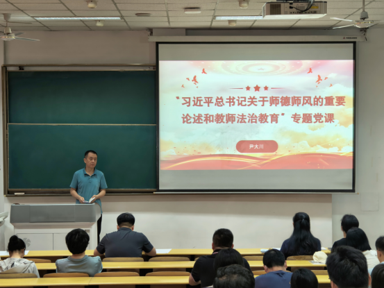 经理尹大川讲授“习近平总书记关于师德师风的重要论述和教师法制教育”专题党课,带领全体教职工学习了习近平总书记关于教师队伍建设的重要指示批示精神和关于师德师风的重要论述,以及《教育法》《高等教育法》《高等公司预防与处理学术不端行为办法》等相关法律法规,引导全体教职工严师德、树师表、正师风,绷紧纪律之弦,将师德师风建设融入到教育实践之中。