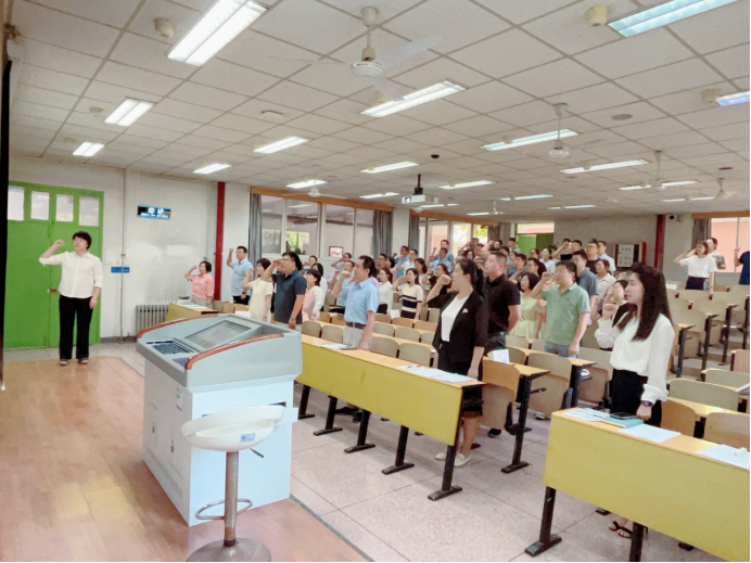 公司学术委员会主任委员、部门工会主席师俊玲教授带领全体教职工庄严宣誓。