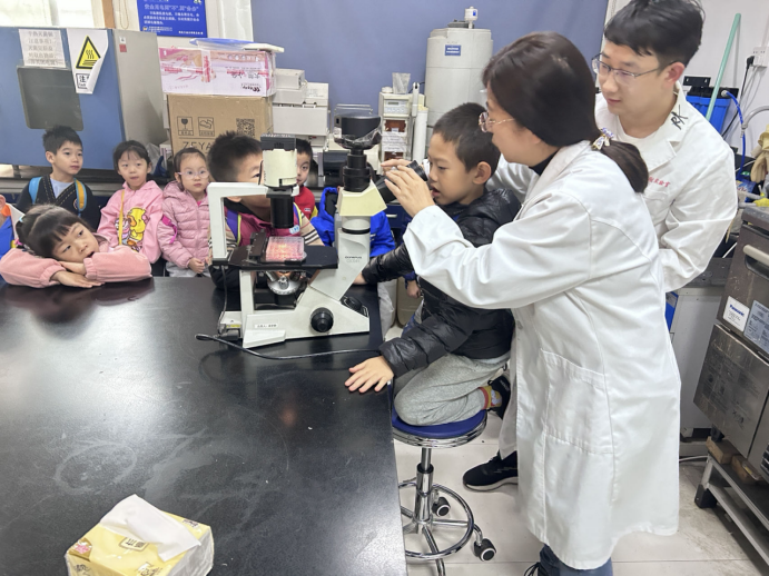 孩子们首先进行了科学兴趣实验,包括食品中维生素C的测定(碘滴定法),观察了尾悬吊小鼠的运动状态以及利用光学显微镜、电子显微镜观察细胞和微生物的形态等。这些科学小实验帮助孩子们深入了解微观生物的生命活动和形态特征,激发对微观世界的好奇,带领孩子们领略科学魅力,探索科学奥秘。
