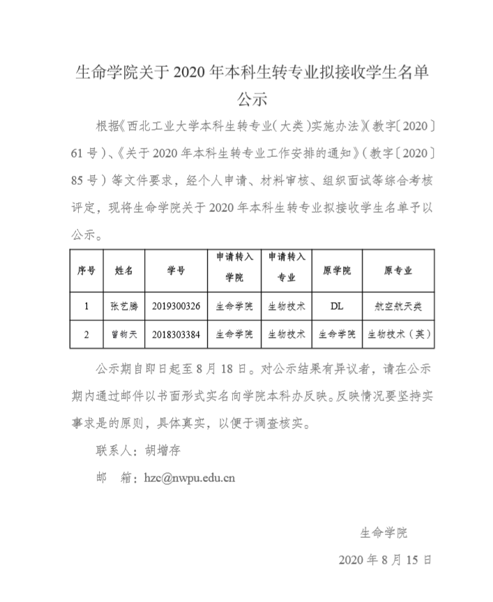 英国365集团关于2020年本科生转专业拟接收员工名单公示